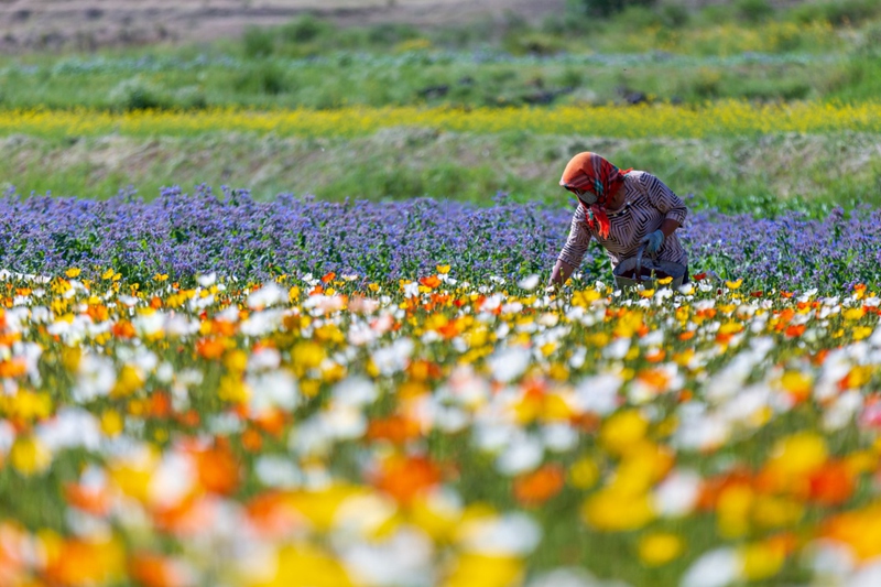 時值盛夏,地處祁連山北麓高海拔山區的甘肅省高臺縣新壩鎮紅沙河村種植的虞美人繽紛綻放,形成花海景觀。近年來,高臺縣新壩鎮將花卉蔬菜制種作為特色產業來抓,積極引導農戶規模化、集中化種植,成為當地農業增效、農民增收的支柱產業之一。